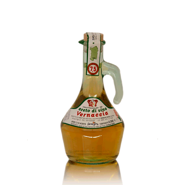 Dieser Vernaccia Weinessig wird ausschließlich aus Vernaccia-Wein aus dem Valle del Tirso (Oristano, Sardinien) hergestellt – einer der traditionsreichsten Weinregionen der Insel.